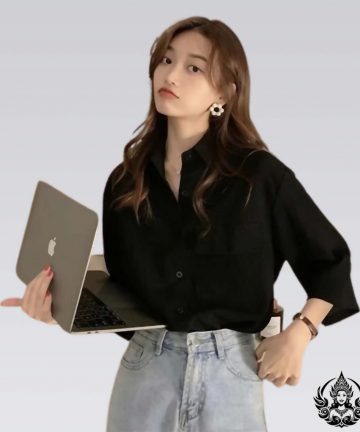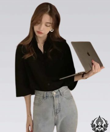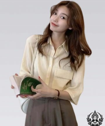 Camisa con cuello, manga tres cuartos