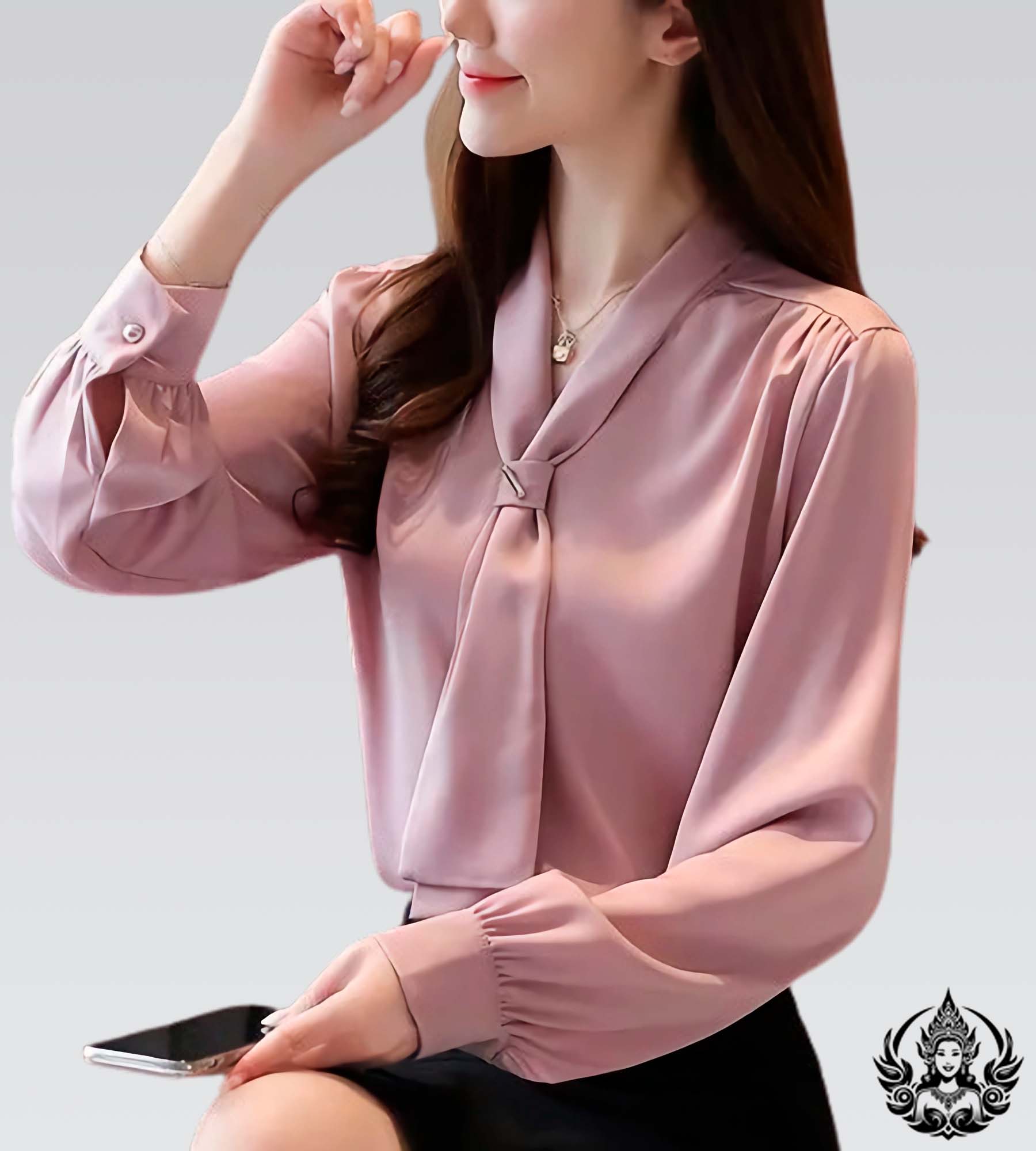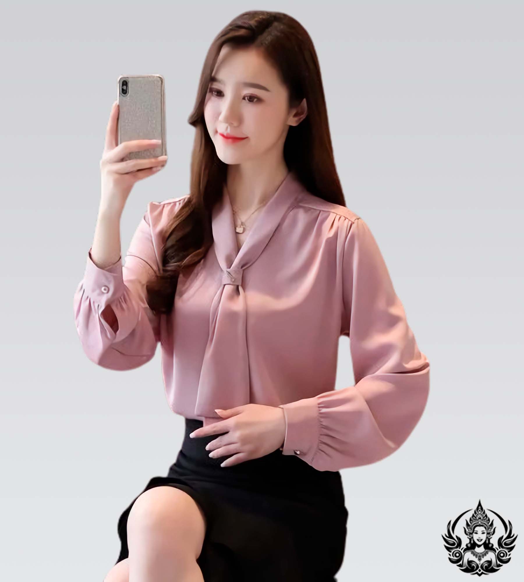 Blusa de gasa, manga larga, estilo camisa de trabajo. Tela cómoda, nueva moda.
