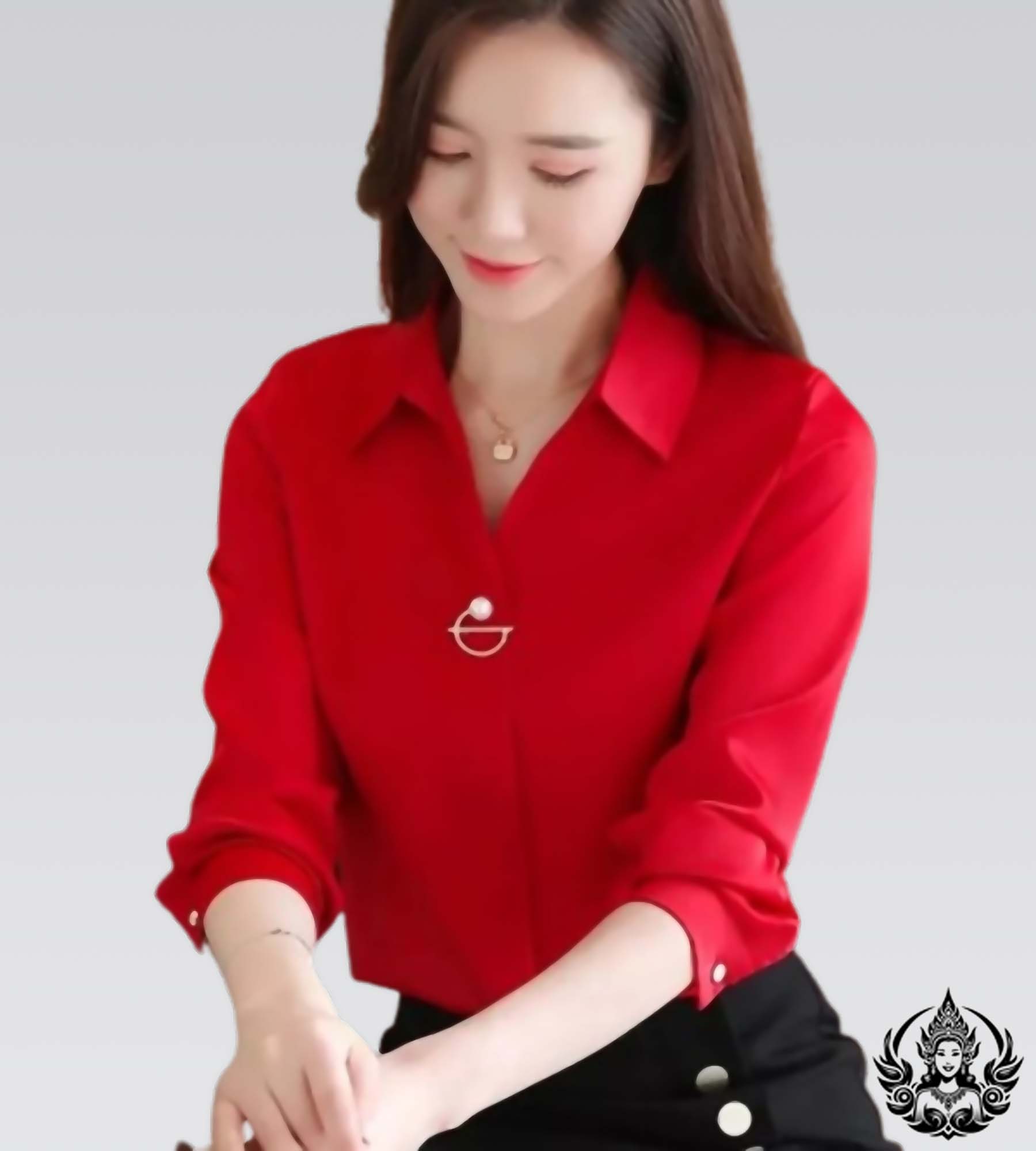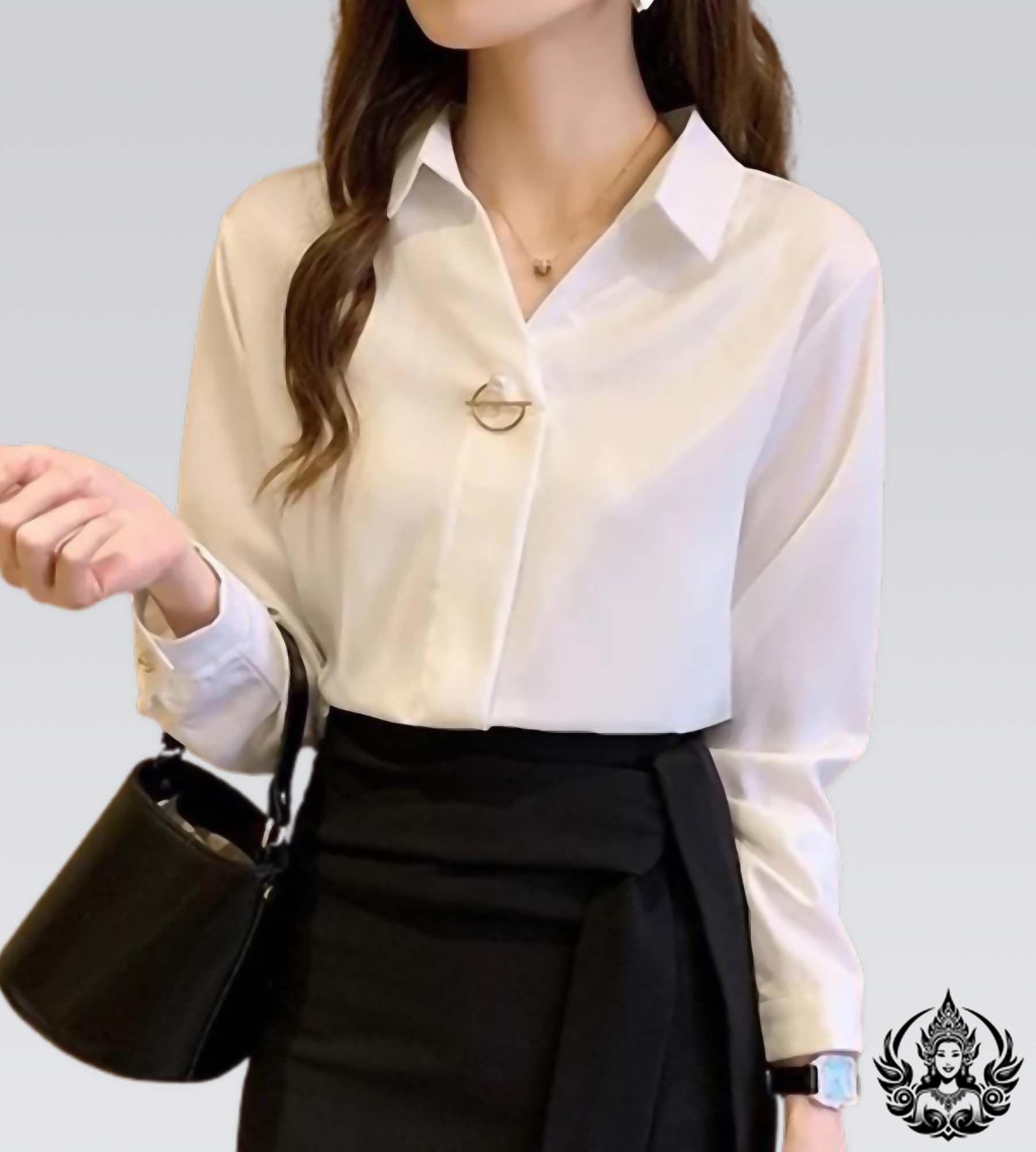 Blusa satinada con cuello en V y broche en la parte delantera, manga larga, estilo coreano, tejido suave, cómoda de llevar, Nueva Moda.