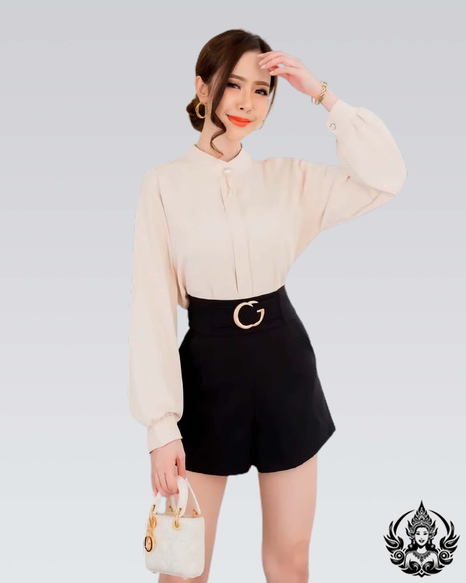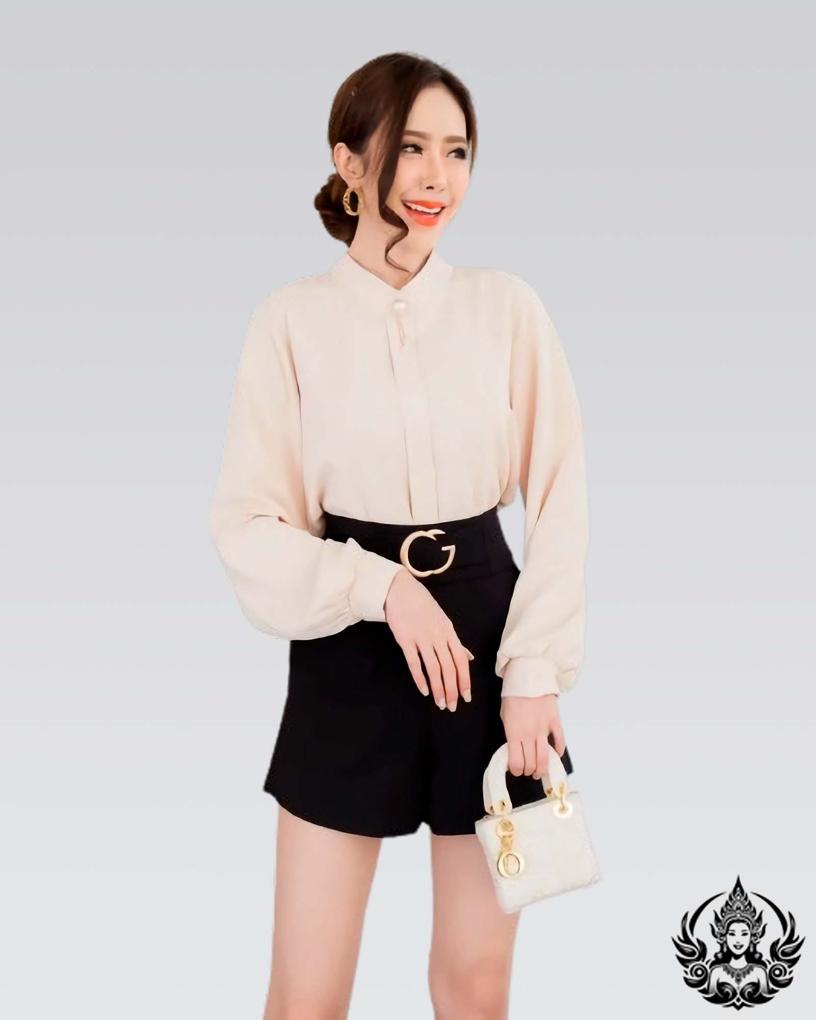 Blusa de mujer, primavera y otoño, novedades, mangas largas, estilo coreano, estilo cuello alto, camisas coreanas🍃🍃