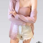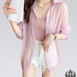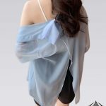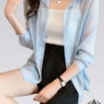Camisa de gasa de manga larga Camisa estilo coreano con espalda rasgada. Cubierta de protección solar