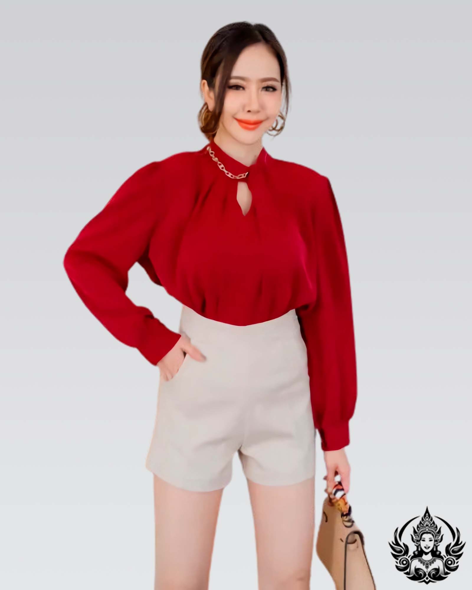 Blusa para mujer Diseñado con un nuevo estilo coreano de cuello de barbilla con empuje de miso, tela suave, cómodo de usar, nueva moda🎉🎉🎉